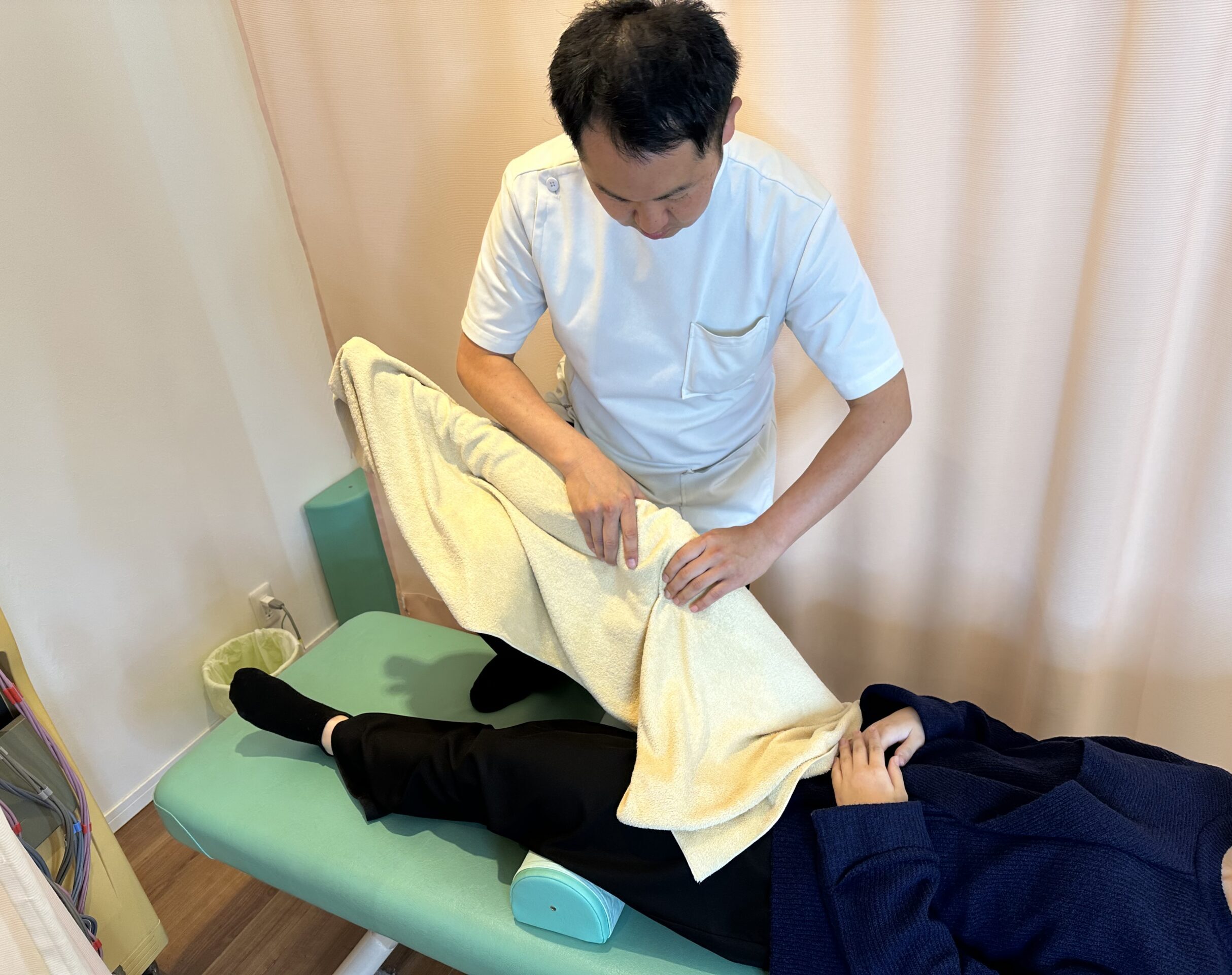 手技による施術に加え、電気刺激や温熱機器などを用いた物理療法も取り入れています。筋肉の緊張が強い場合や、広い範囲に負担がかかっている場合には、状態に応じて電気機器や温熱機器を活用します。