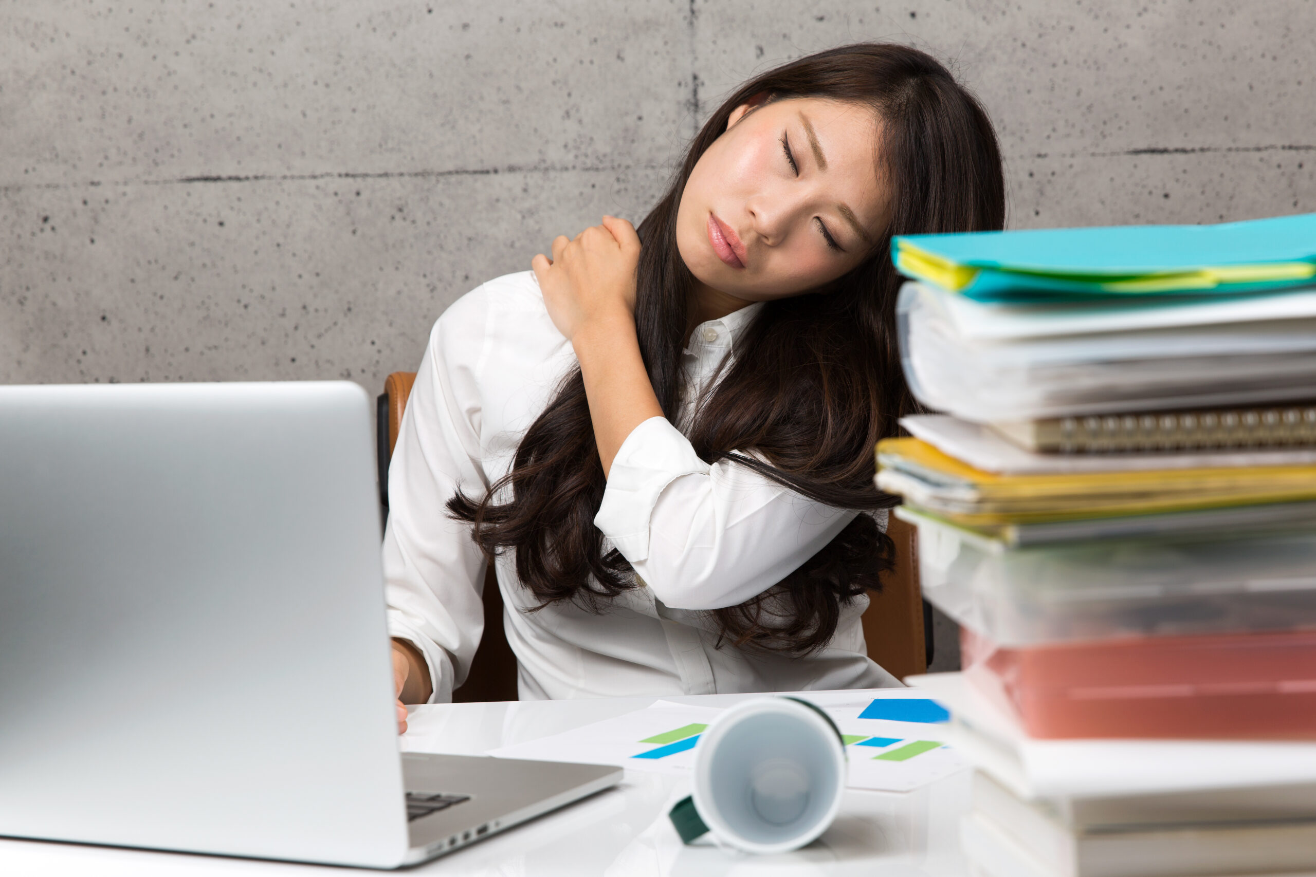 - デスクワーク後、首や肩がガチガチになる