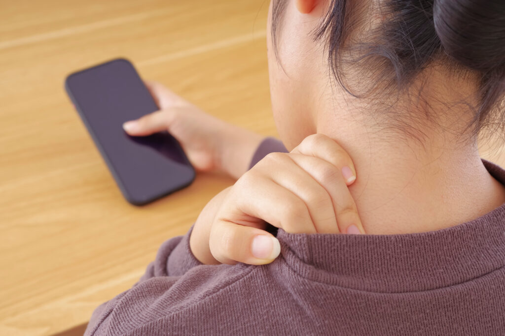 デスクワークやスマートフォンの使用で前かがみの姿勢が続くと、首まわりの筋肉に負担が集中します。
